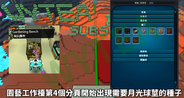 園藝工作檯第4個分頁開始出現需要月光球莖的種子